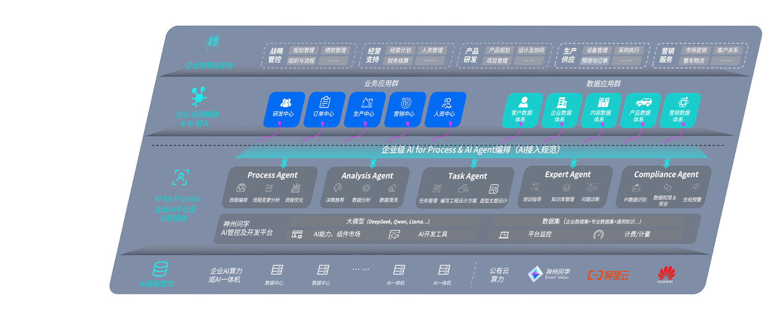 巅峰国际问学智车解决方案是一套基于AI技术的汽车行业智能化系统,,覆盖从底层算力到顶层AI应用的全栈方案。。。。方案由算力层、、、、模型层和应用层组成:算力层,,,,方案支持多种一体机配置,,,具备云端灵活部署、、多云适配以及动态优化计算资源的能力;模型层,,,巅峰国际问学平台版提供了企业级AI应用一站式构建与管理平台,,,支持基于后训练强化技术的汽车企业专属模型的训练、、、、评测和运营;应用层,,巅峰国际问学DeepSeek版提供包括超级员工、、、、智能招采、、智能营销、、智能客服、、AI for BI等一系列解决方案,,,,可助力汽车行业实现数字化转型,,让管理更智能、、、响应更敏捷。。。。